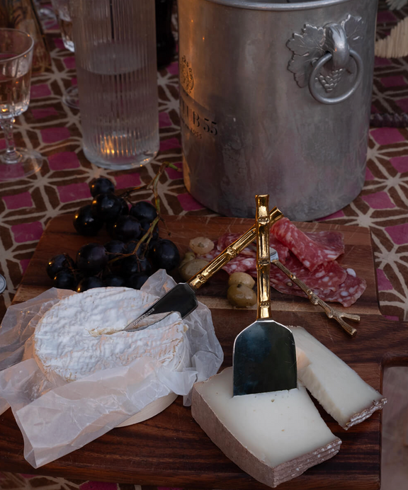 Breng een vleugje elegantie naar je aperitiefmoment met deze set van drie handgemaakte kaasmessen. Elk mes is met zorg vervaardigd uit gerecycleerd messing en roestvrij staal, en straalt tijdloze klasse uit met een speelse twist.