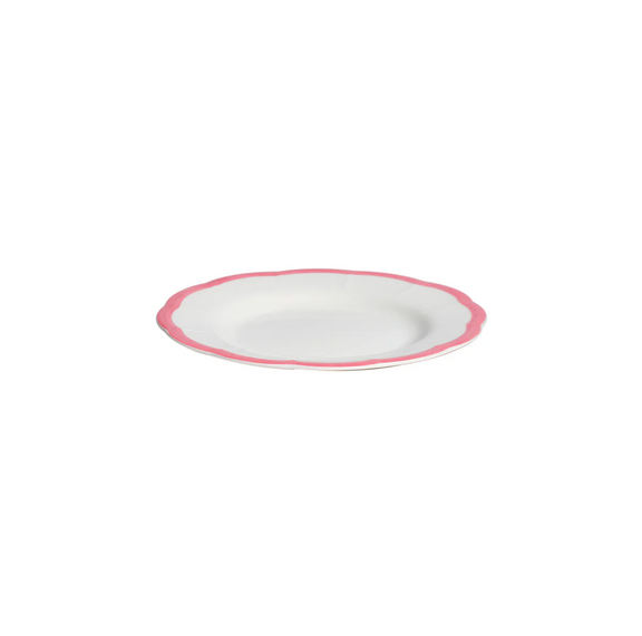 Materiaal: IronstoneKleur: Wit met gekleurd gegolfde randAfmetingen: Ø 16 cm Gebruik: Vaatwasmachine- en magnetronbestendig