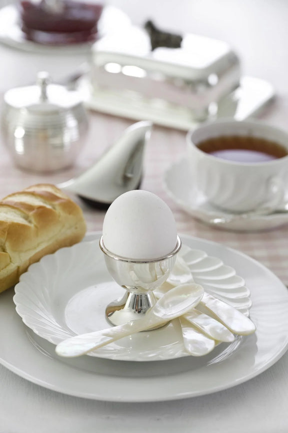 Tijdloos elegante eierdop in klassieke vorm, zwaar verzilverd en hoogglans afgewerkt. Dankzij de brede voet staat hij stabiel en geeft hij elke ontbijttafel een verfijnde uitstraling.