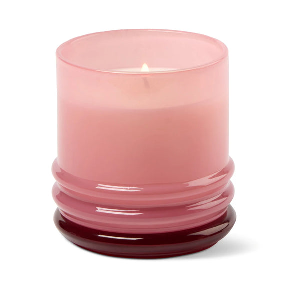 Opvallende glazen geurkaars in roze en rood die warmte en kleur toevoegt aan je interieur. Gevuld met de bloemige geur Saffron Rose. Het deksel kan tijdens het branden onder de kaars worden geplaatst voor een speels effect. Verpakt in een luxe schuifdoos – ideaal om te mixen & matchen.