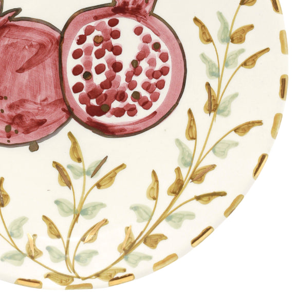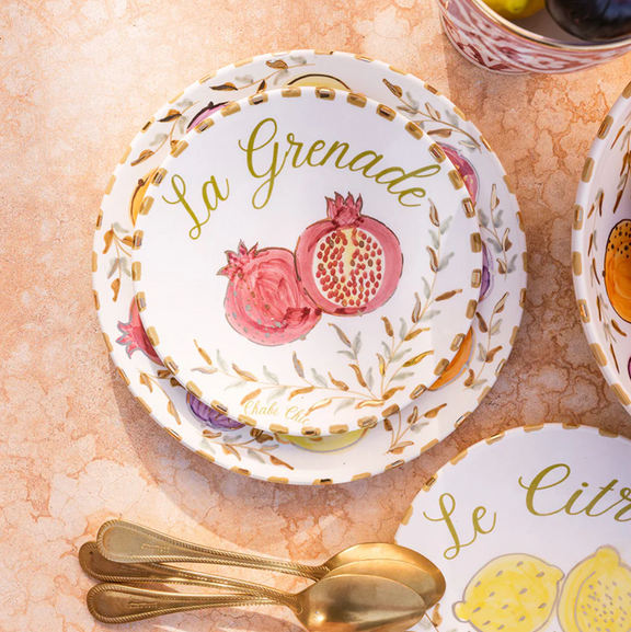 Breng de zonnige sfeer van mediterrane boomgaarden naar je tafel met deze fruitige borden, elk met de hand beschilderd met citroen, sinaasappel, vijg of granaatappel. Elk bord is een uniek stuk vakmanschap - perfect om kleur en karakter toe te voegen aan je servies.