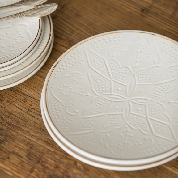 Keramisch Bord – Wit reliëf met Goud - Ø 26