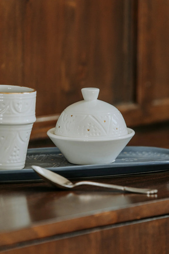 Keramische Suikerpotje – Wit relief met goud