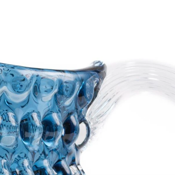 Deze elegante glazen karaf is met de mond geblazen en afgewerkt in het traditionele hobnail-patroon uit Bohemen, Tsjechië. Een tijdloos, handgemaakt stuk dat sfeer en karakter toevoegt aan elke tafelsetting.