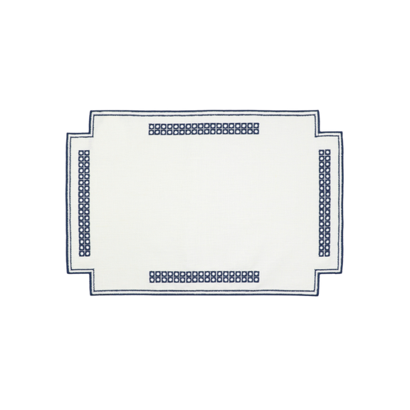 Deze vlekbestendige linnen placemat heeft een verfijnde, contrasterende borduurrand die zorgt voor een elegante uitstraling. Ideaal om de ontbijt- of lunchtabel stijlvol te dekken, en ook prachtig te combineren met een tafelkleed voor een veelzijdige tafelschikking.
