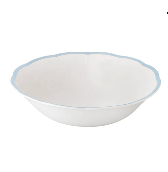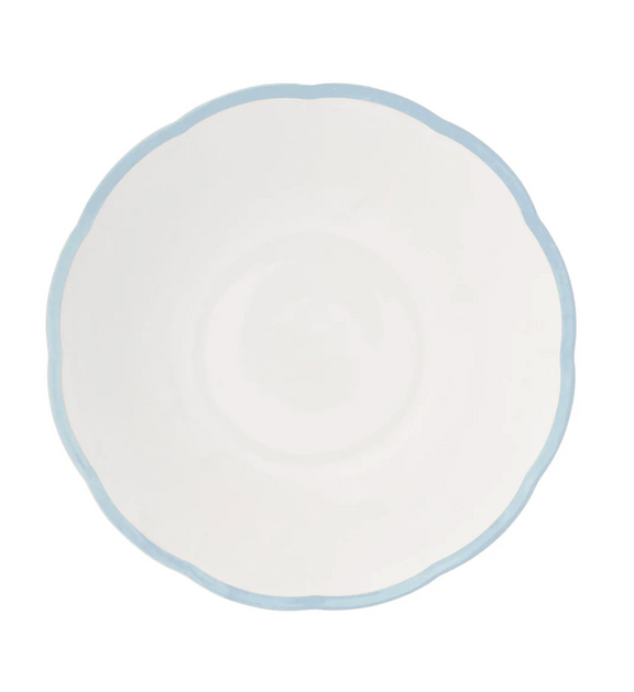 Materiaal: IronstoneKleur: Wit met gekleurd gegolfde randAfmetingen: Ø 23.7 cm Gebruik: Vaatwasmachine- en magnetronbestendig