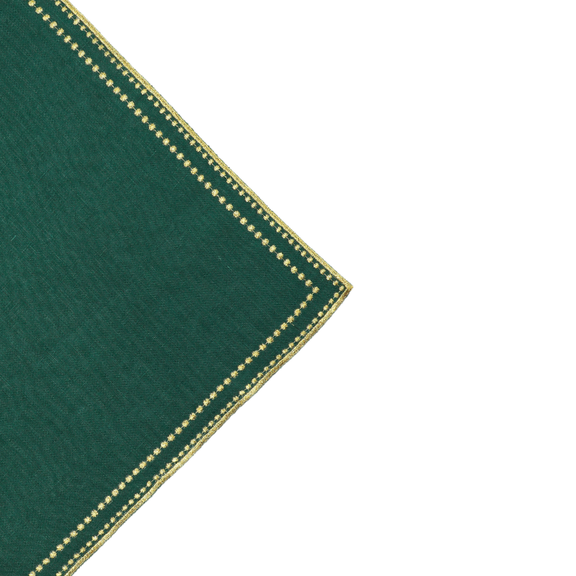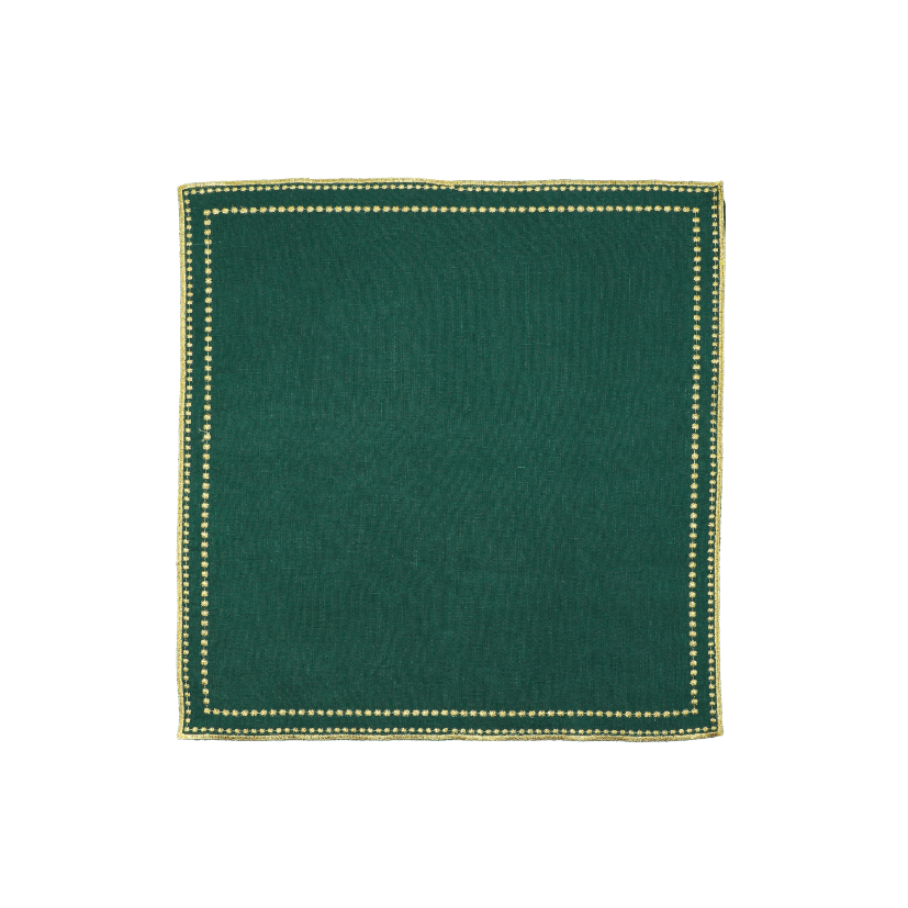 Een elegante servet van puur gewassen linnen, afgewerkt met een verfijnde contrasterende gouden bies. Handgemaakt in Italië. Deze servetten zijn een onmisbaar detail voor een stijlvolle en kleurrijke tafelopmaak en laten zich eindeloos combineren met tafelkleden en placemats uit dezelfde collectie.